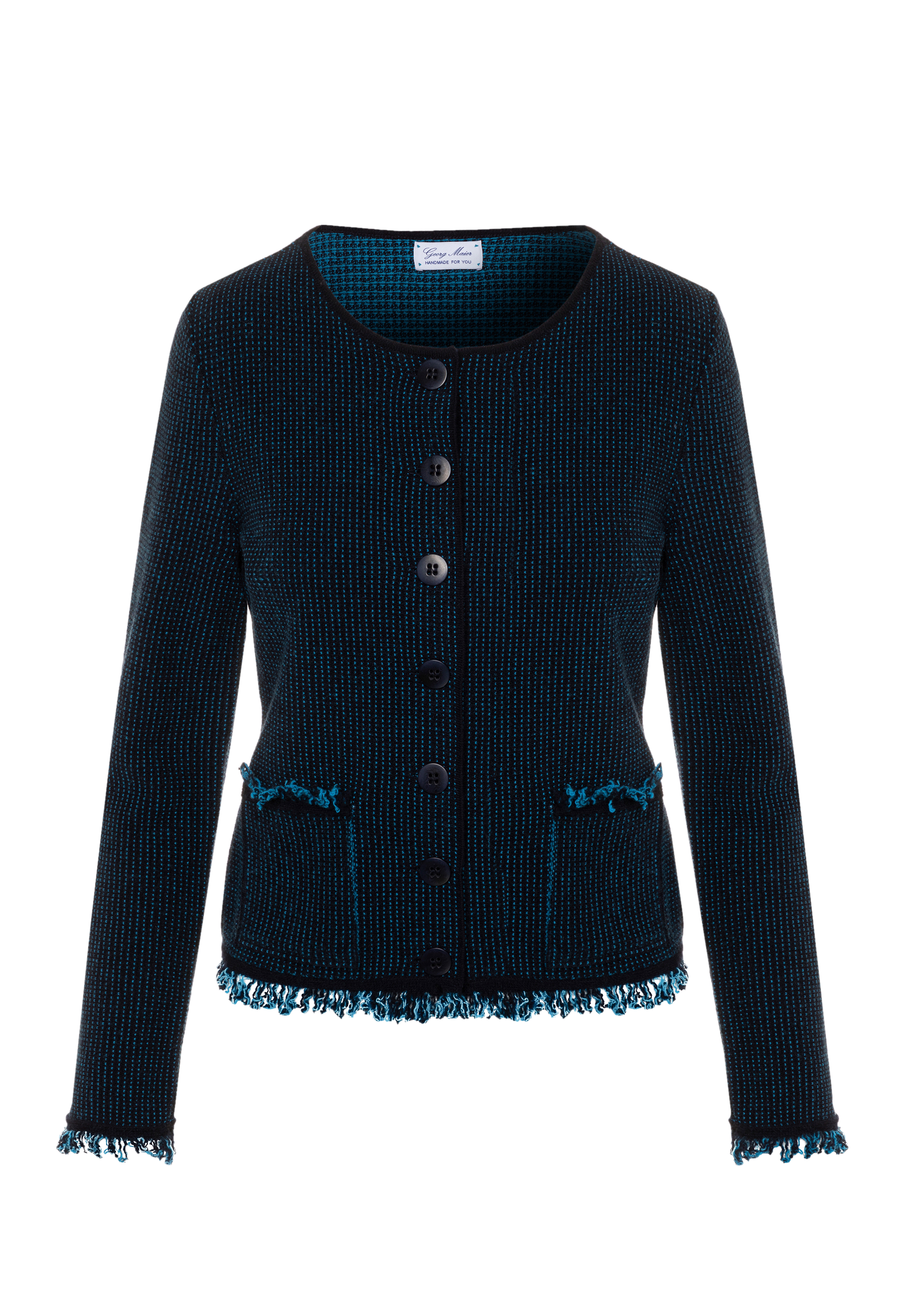 Fransen am Abschluss der Jacke, der Ärmel und der Taschen